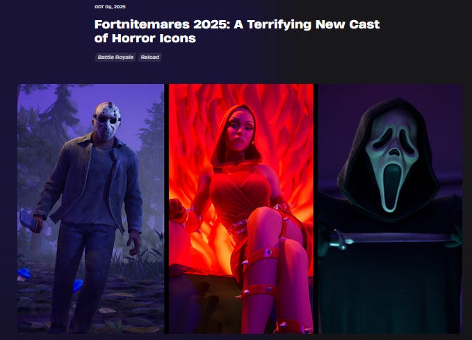 Fortnitemares does make use of adult horror franchises for their well-known recognisable characters and gameplay opportunities